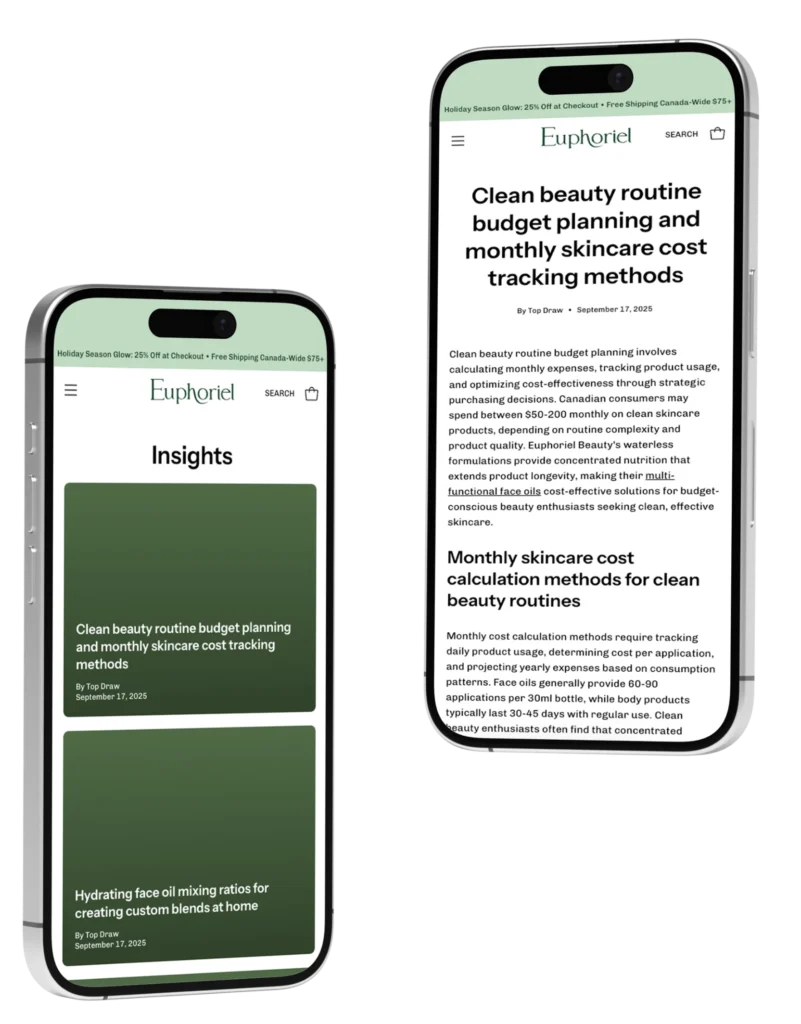 Rather than fighting technical template limitations or redesigning a website from scratch, Top Draw pivoted to a content-led growth strategy focused on Topical Authority. By answering the specific questions shoppers were asking, we positioned Euphoriel as the definitive source for skincare education.