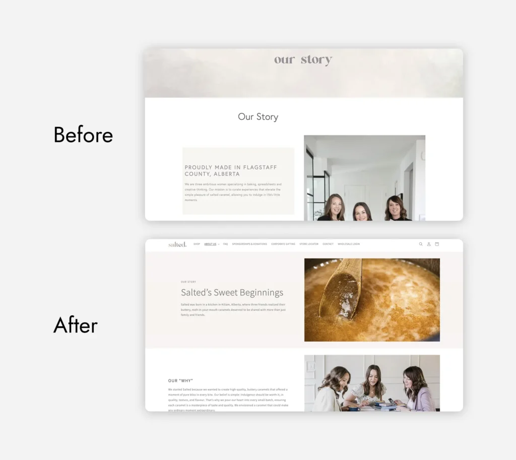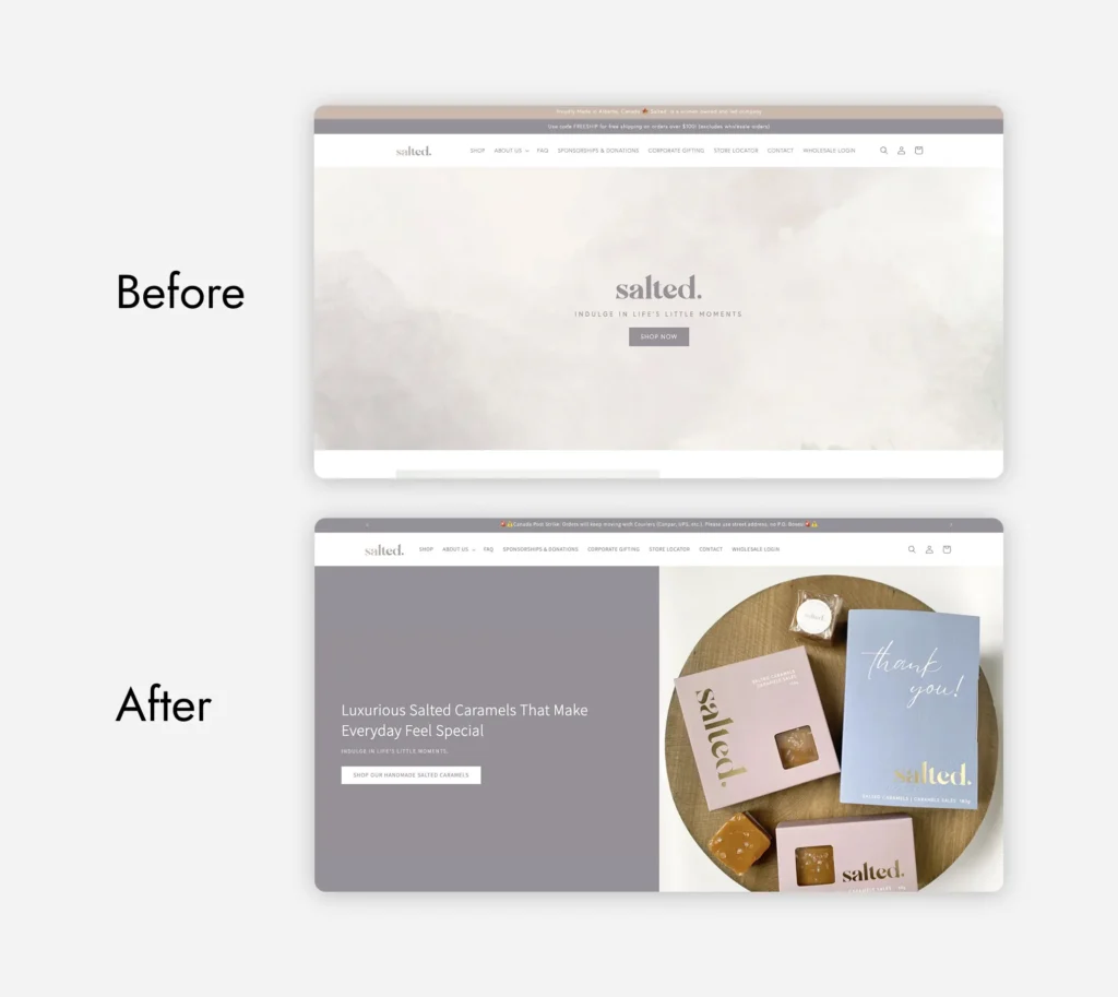 Salted had already built a strong local presence in Sedgewick, Alberta as a well-curated destination for lifestyle gifts, home goods, treats, and Canadian-made products. Their story was one that you can’t help but root for: three small-town Alberta moms, with a goal of bringing high-quality, decadent treats to customers to either gift or enjoy.