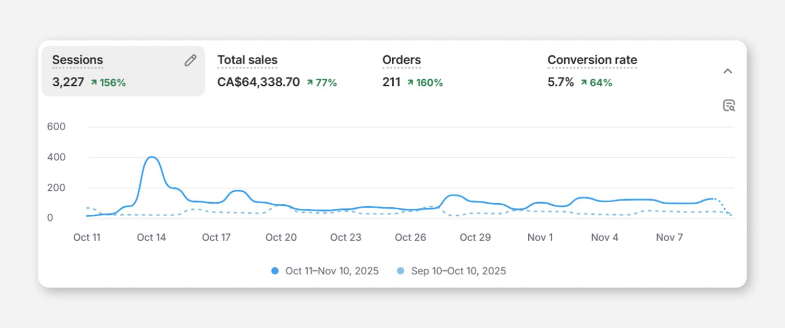 Once both the website revamp and Meta ads training were implemented, Salted saw meaningful, measurable growth across all major e-commerce KPIs.